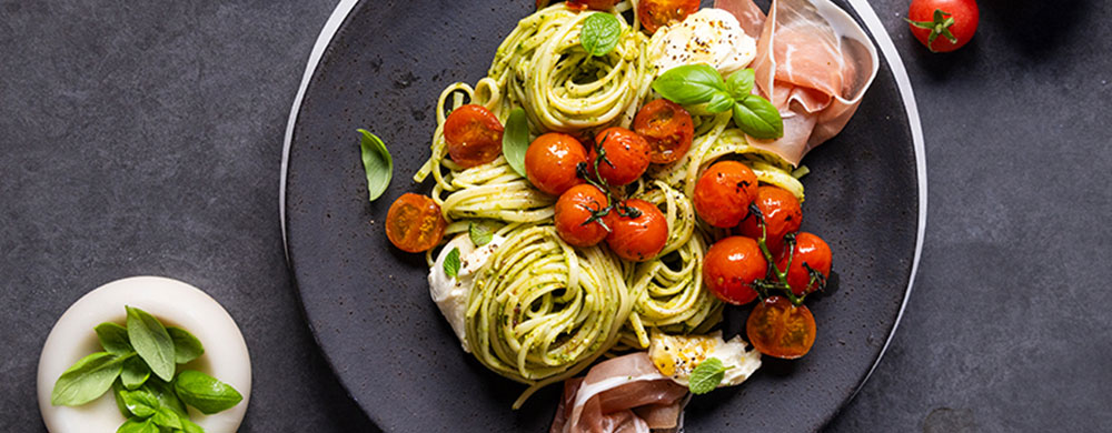 - Serve pasta topped with prosciutto crudo or beef carpaccio, tomatoes and chunks of fior de latte or feta.