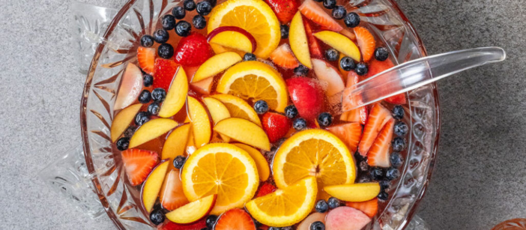 - Combine all ingredients in a punch bowl or two large pitchers.